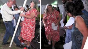 03:21 HOW IS IT POSSIBLE? Bends over! Metal rod in the back & touches the floor. The power of Jesus! Mark Hemans