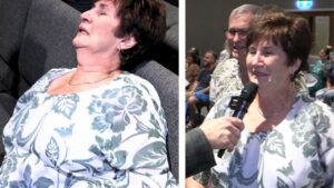 05:12 DOUBLE KNEE SURGERY she couldn’t bend her knees, & painful to walk. Located by Holy Spirit & healed! Mark Hemans